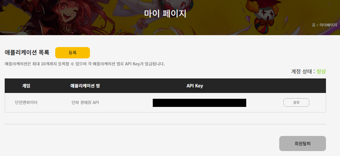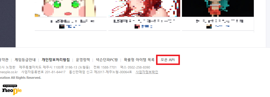 던파홈페이지 맨 아래에 숨어있는 오픈 API와