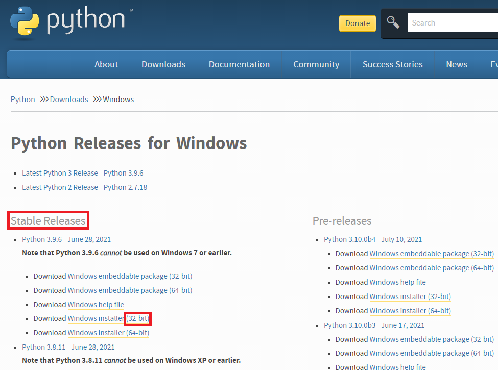 윈도우 기준, 파이썬 홈페이지(python.org)에서