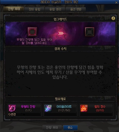 "정화의 성배"를 통해서 잔향부여 및 시로코 융합이 가능하다.