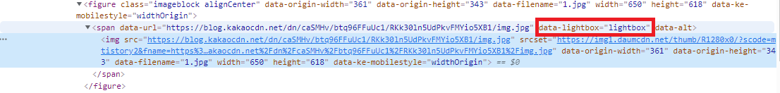 * 원리는 html에서 "data-lightbox"라는 속성을