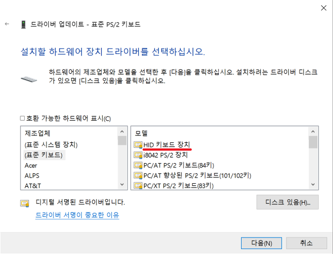 ㄴ 드라이버를 잘못된 걸로 바꾸는 방식은 이제 안되는 것 같다.